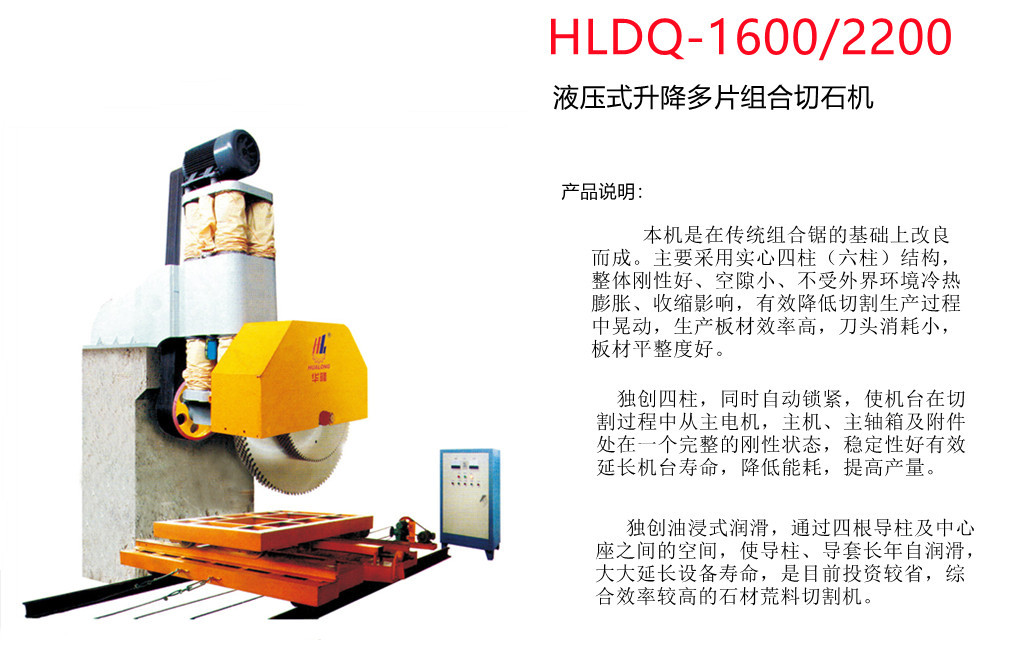 Hydraulic Lift Mulit-blade Stone Cutting Machine HLDQ-1600 is suitable for cutting stone blocks, su𓃲ch as granite, marble.
